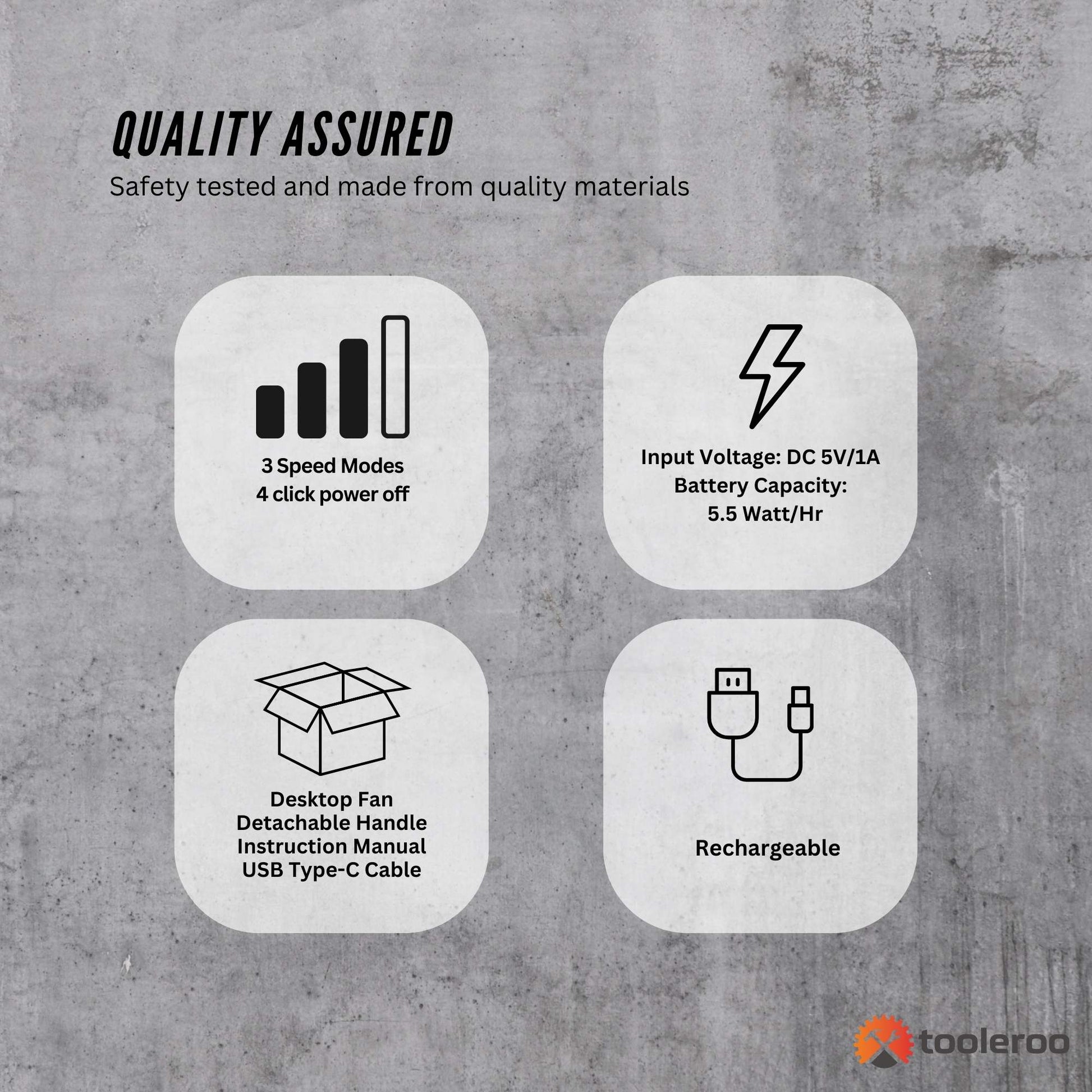 Unlike noisy traditional fans, this USB desktop fan operates at whisper-quiet levels, making it ideal for focused work, studying, or sleeping. The three-speed control lets you customize airflow intensity, while the rechargeable battery provides cordless freedom when you need it.
